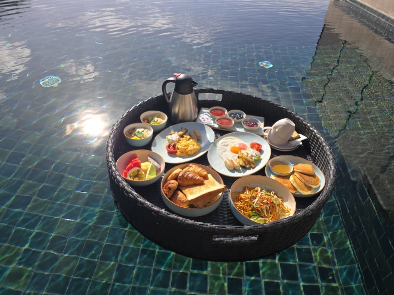 ¼ö¿µÀå¿¡¼ µÑ¸¸ÀÇ ¿©À¯·Î¿î ¾ÆÄ§À» Áñ±â´Â ¼ø°£ÀÌ Á¤¸» Ưº°Çß´Ù. À½½Äµµ ¿¹»Ú°Ô ¼¼ÆÃµÇ¾î ÀÖ¾ú°í, ºÐÀ§±â ÀÚü°¡ ½ÅÈ¥¿©Çà °¨¼ºÀ» Á¦´ë·Î »ì·ÁÁ༠»çÁø Âï±â¿¡µµ µü ÁÁ¾Ò´Ù.